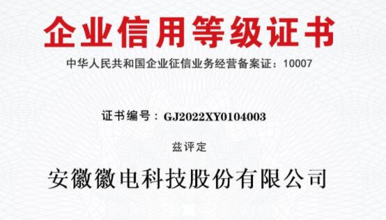 徽電科技榮獲“AAA級企業信用等級”認證